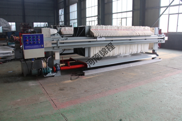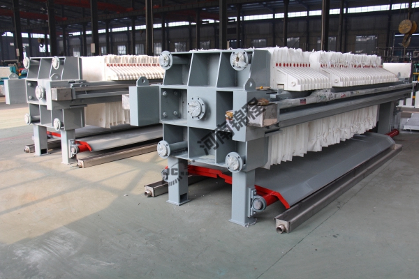 壓濾機在過濾過程中,由于濾布的毛細滲漏現(xiàn)象,濾板之間會有滴漏,這樣即對環(huán)境造成污染,又增加了壓濾機下面的儲泥斗中的泥料的含水率,給操作帶來很大麻煩。我公司設計的自動集液翻板系統(tǒng)可收集濾板滴漏的液體,避免壓濾機工作現(xiàn)場的污染,也避免了儲泥斗中的已脫水物料被浸潤。