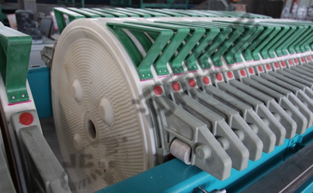 圓形壓濾機的構成部分主要有機架,止推板,壓緊板,大梁,濾布,濾框等